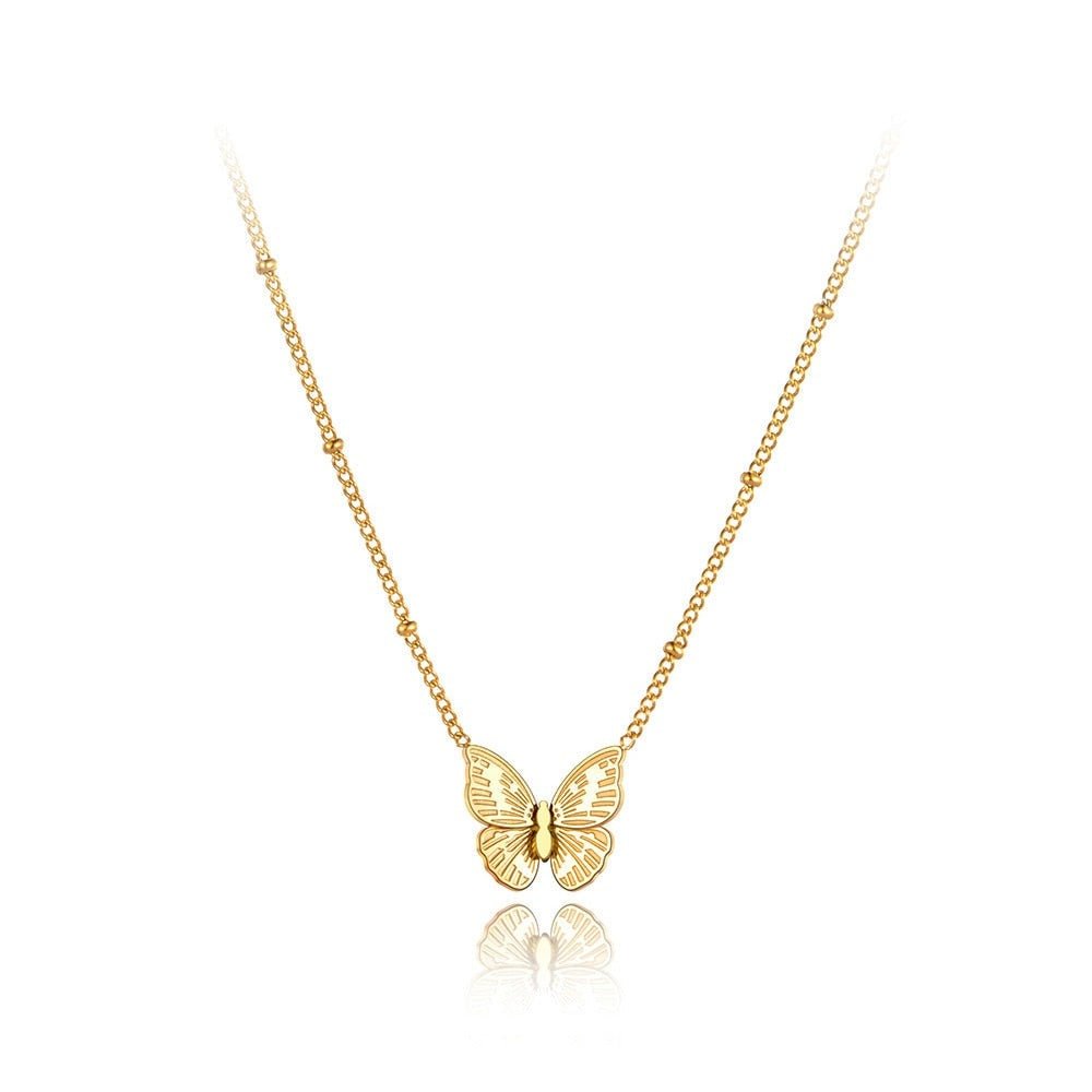 Uvolněte svou vnitřní krásu s naším jemným a úchvatným motýlím náhrdelníkem! Drobné motýlí kouzlo ladně visí na jemném řetízku a dodává vašemu vzhledu nádech rozmaru. Ať už jej nosíte samostatně nebo jej vrstvíte s jinými kousky, tento náhrdelník je dokonalým způsobem, jak předvést svůj jedinečný styl. Jeho malá velikost z něj dělá nenucený každodenní doplněk. Přijměte tedy svou ženskost a vlajte do stylu s tímto motýlím náhrdelníkem.