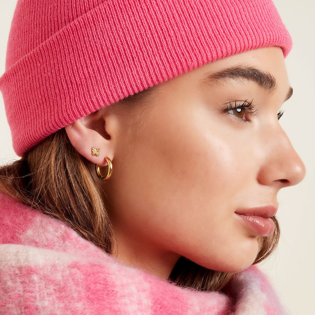 Dokonalé minimalistické kruhové náušnice. Tyto krásně upravené náušnice jsou nutností ke každému outfitu! Kreolky jsou vyrobeny z chirurgické oceli ve zlaté barvě a jsou velké 3 cm. Náušnice se skvěle ladí s jinými zlatými náušnicemi, jako jsou náušnice s perleťovými nebo zirkonovými detaily. Jednoduché náušnice jsou kromě zlata dostupné i ve stříbrné.