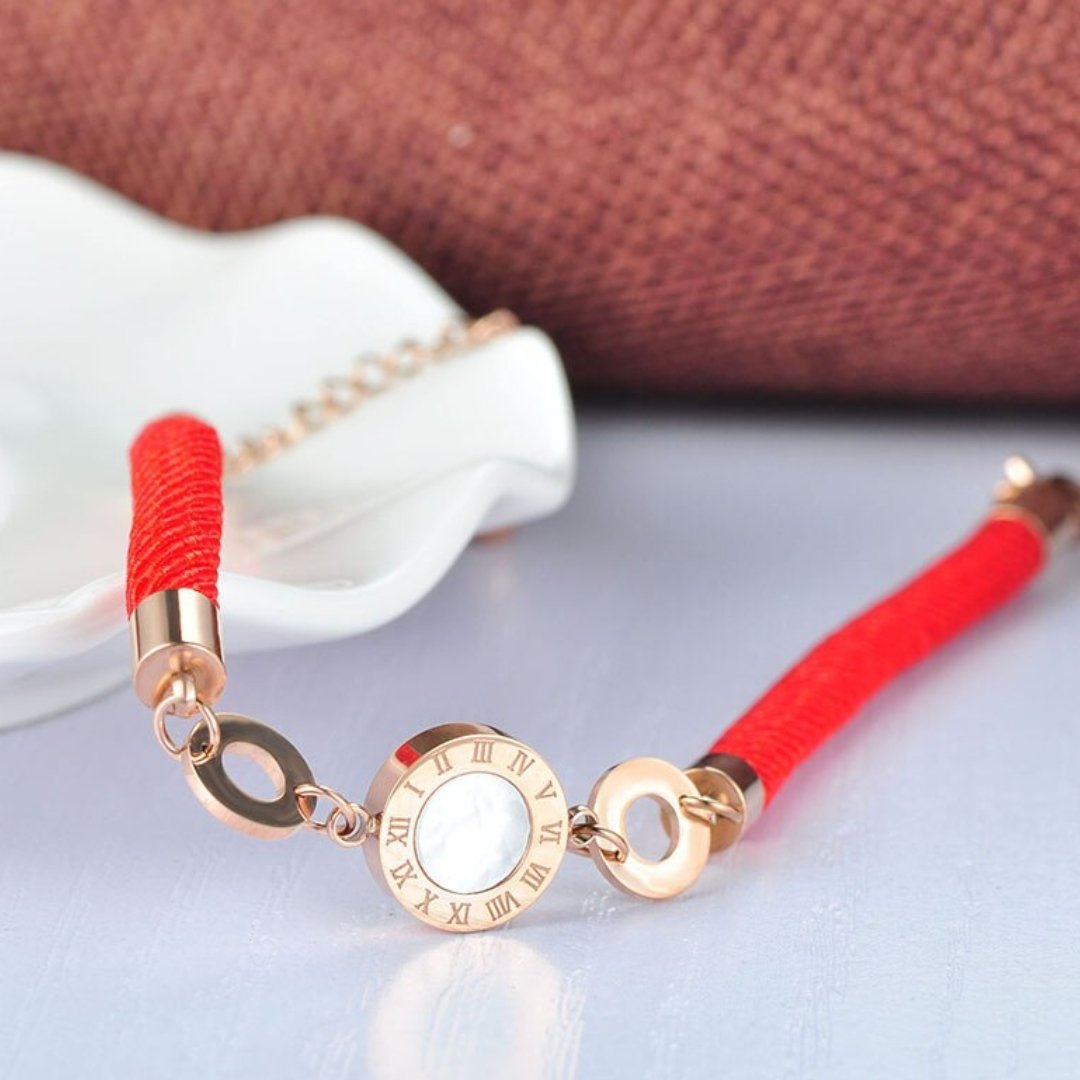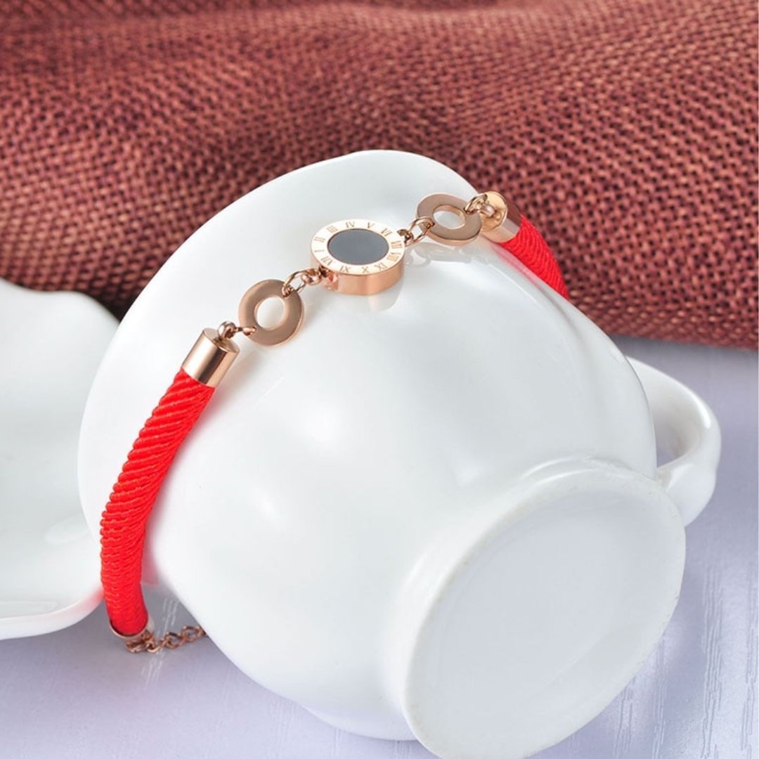 • Materiál: Chirurgická ocel pozlacená 18 karátovým zlatem & červená šňůrka