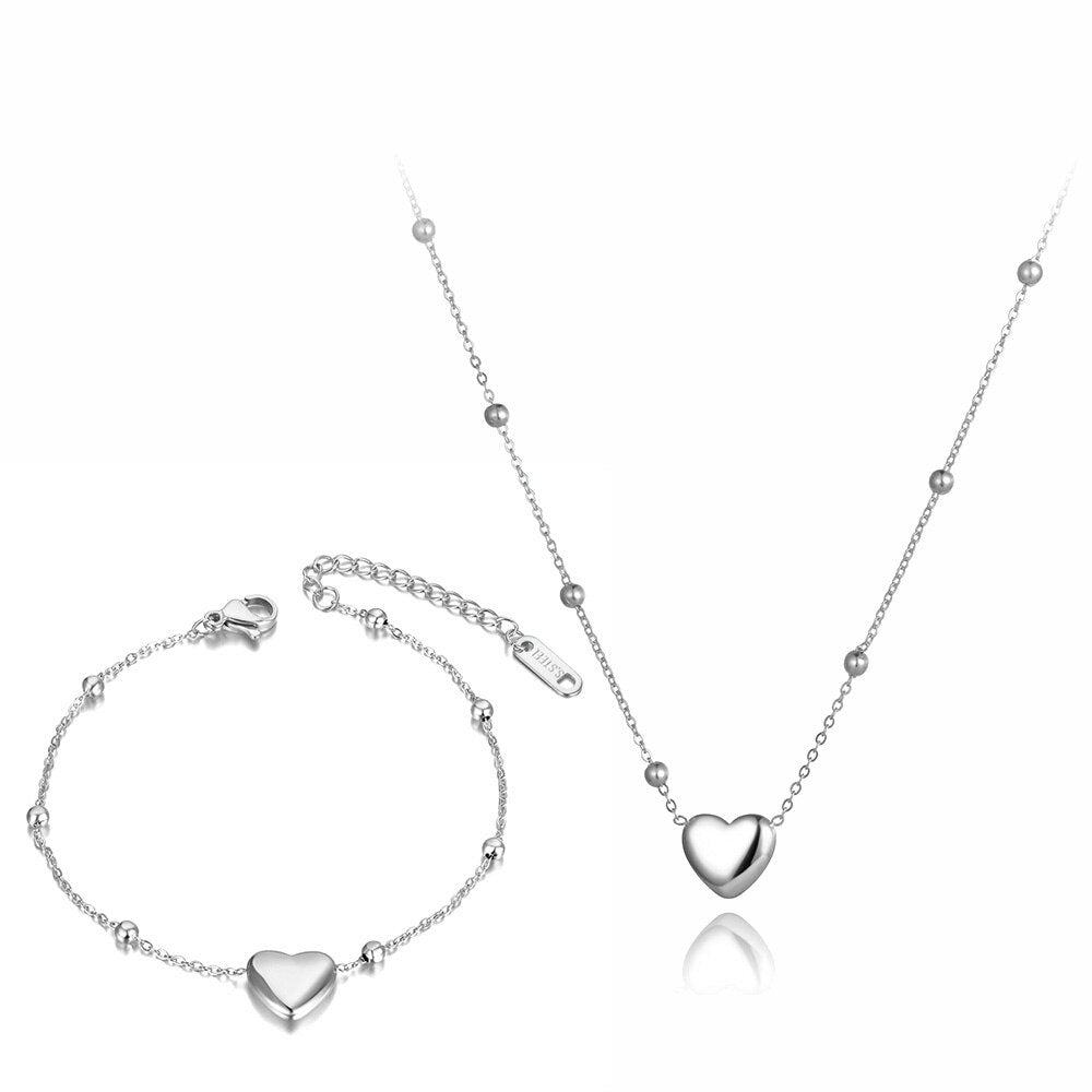 Sada minimalistického náhrdelníku a náramku ve tvaru srdíčka, které zdobí jemné kuličky. Srdce jako nadčasový symbol potěší všechny ženy a nikdy nevyjde z módy. Klasický symbol lásky je vhodný pro ženy všech věkových kategorií a potěší také jako dárek.
