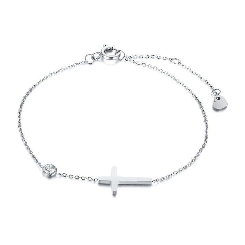 Objevte kouzlo elegance s naším náramkem s křížkem. Tento jedinečný šperk je mistrovským dílem, které spojuje klasický symbol kříže s jiskřivým krystalem, dodávajíc mu nádech luxusu a sofistikovanosti. Náramek je navržen tak, aby zdůraznil vaši osobnost a přidal jiskru k vašemu vzhledu v každém okamžiku.