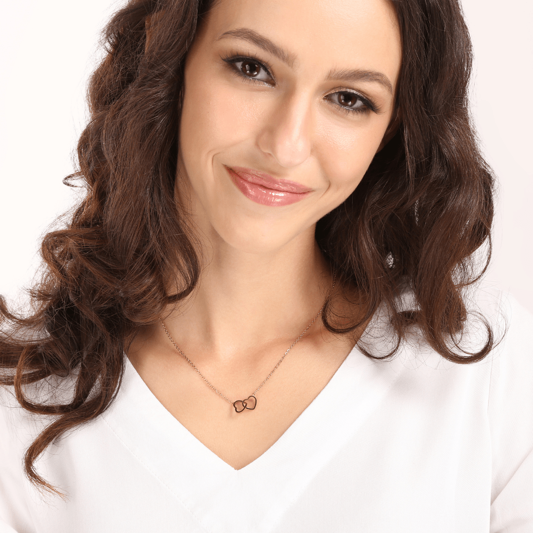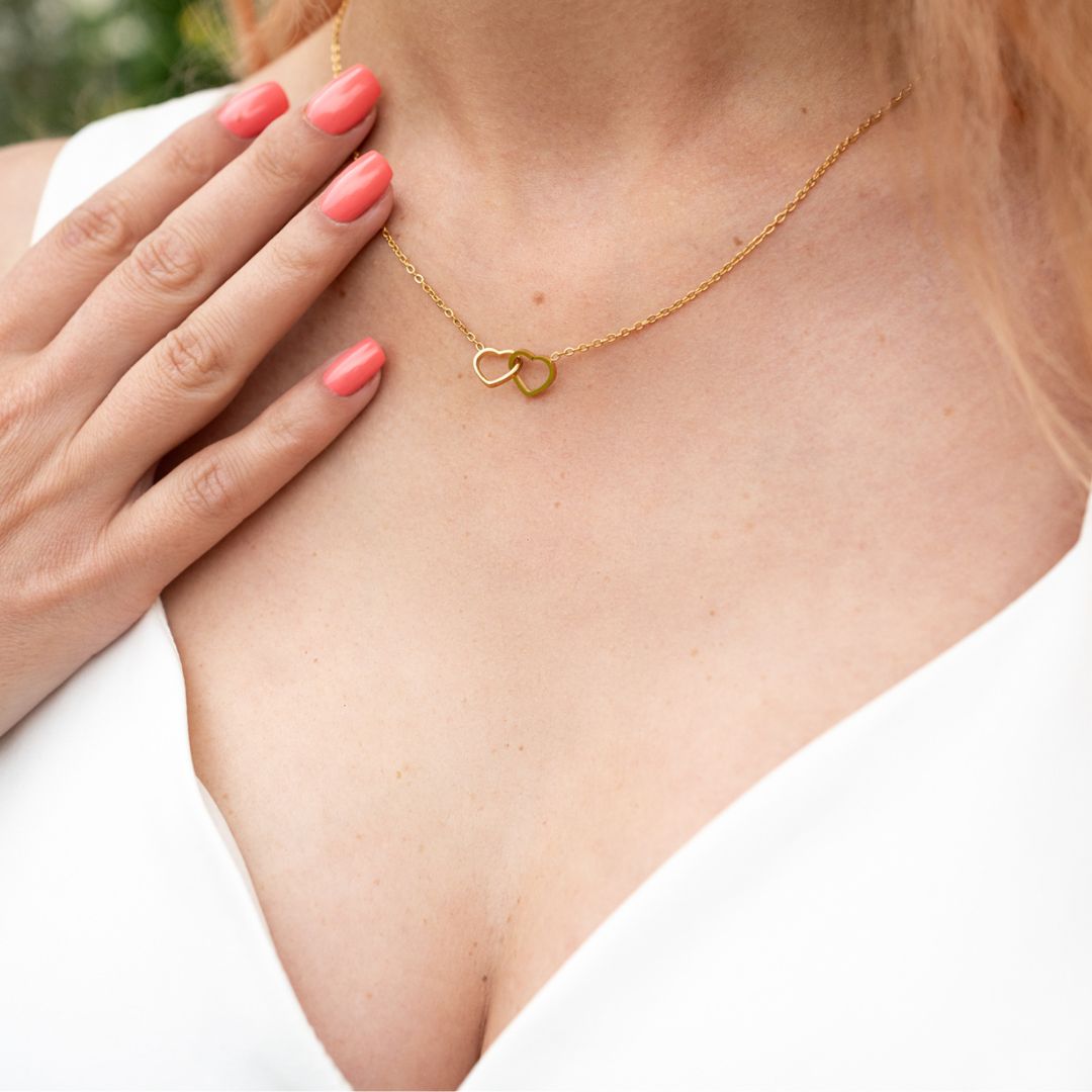 Romantický náhrdelník přímo vybízí k darování z lásky. Dvě pevně spojená srdíčka představující symbol lásky, ruční zpracování a kvalitní materiály zaručují, že s tímto náhrdelníkem jistě zaujmete. Tento náhrdelník s minimalistickými srdíčky je ideálním dárkem z lásky ženám, které preferují jednoduché šperky.